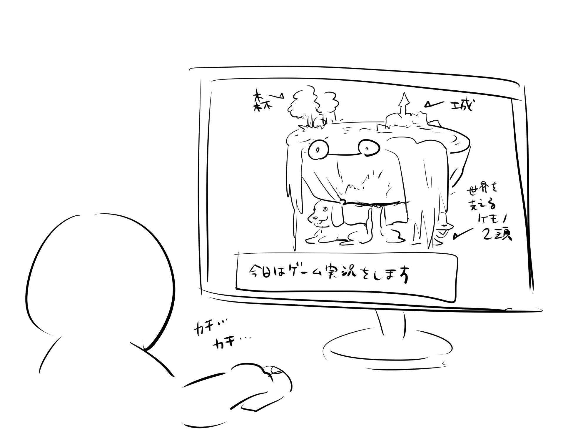 フォロワーの家で昔の人が考える地球の形をしたVtuberの動画を観てる夢見たときの絵
