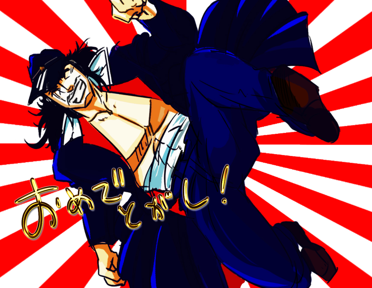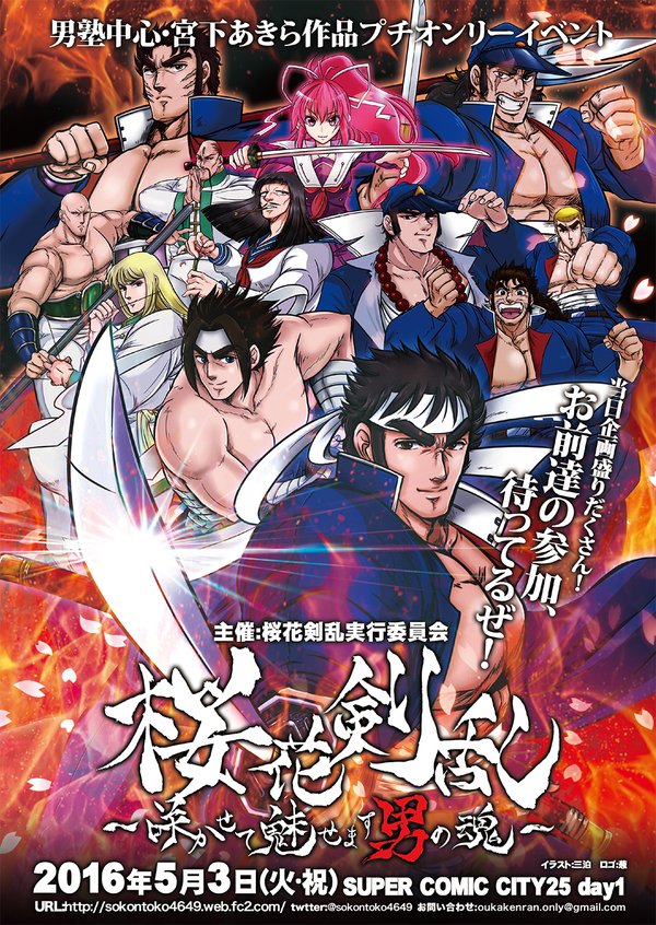 フライヤーを描かせていただいた【男塾中心・宮下あきら作品プチオンリー企画『桜花剣乱~咲かせて魅せます男の魂~』】のアンソロ、グッズの通販がboothにて開始したようです。