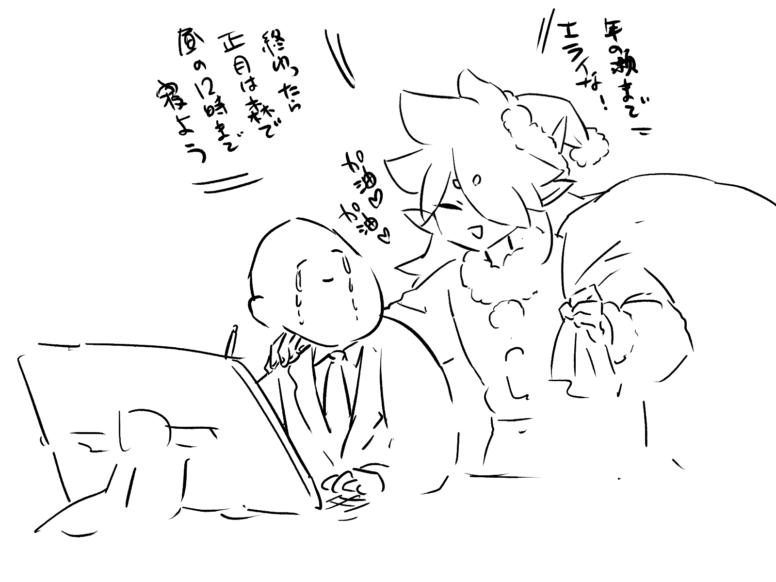 友達からの社畜に優しいフーシー描いてというリクエスト絵 この年のクリスマスに描いた絵 最近半年分とかまとめてアップしてるので季節感ゼロですみません…溜めないようにしたい